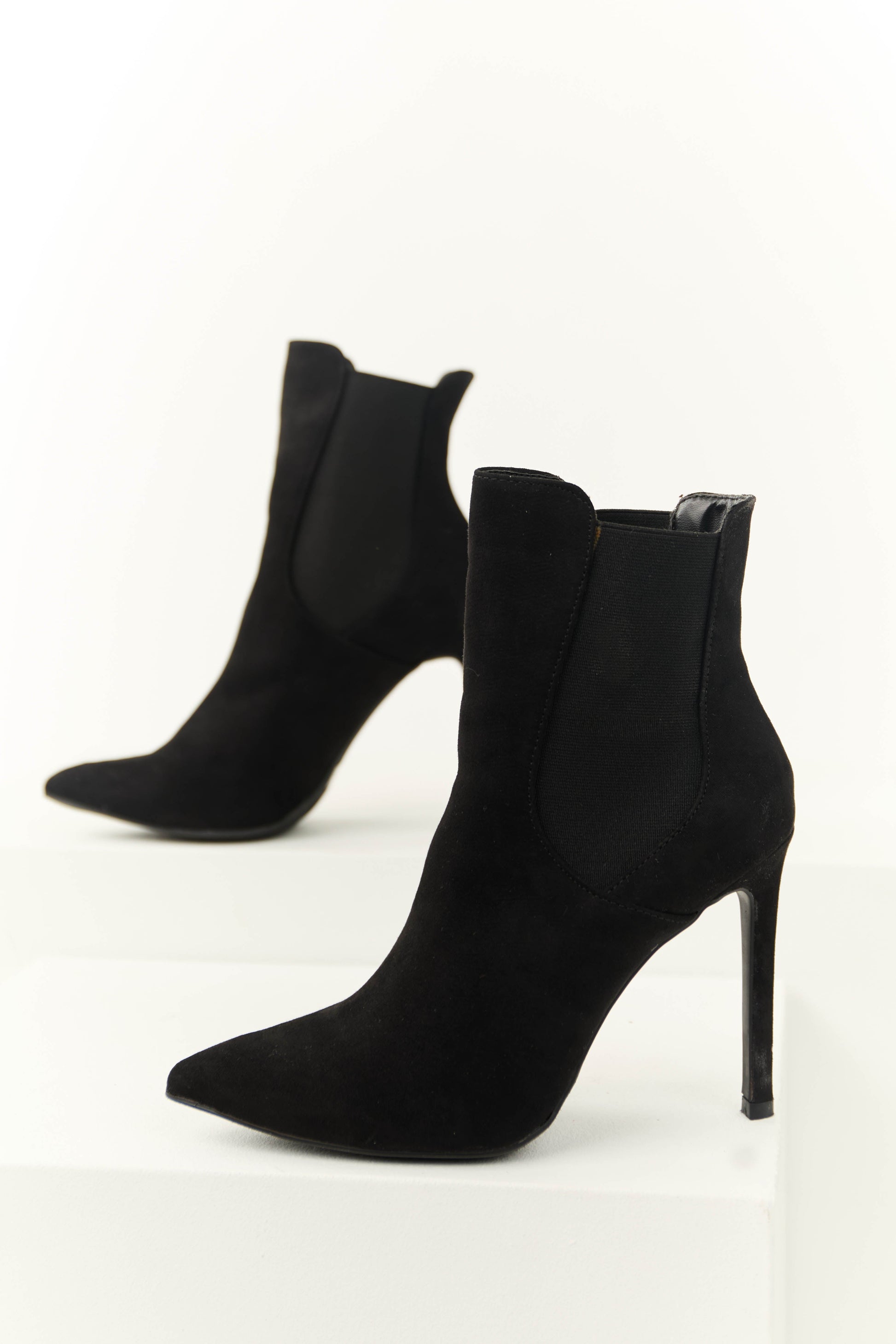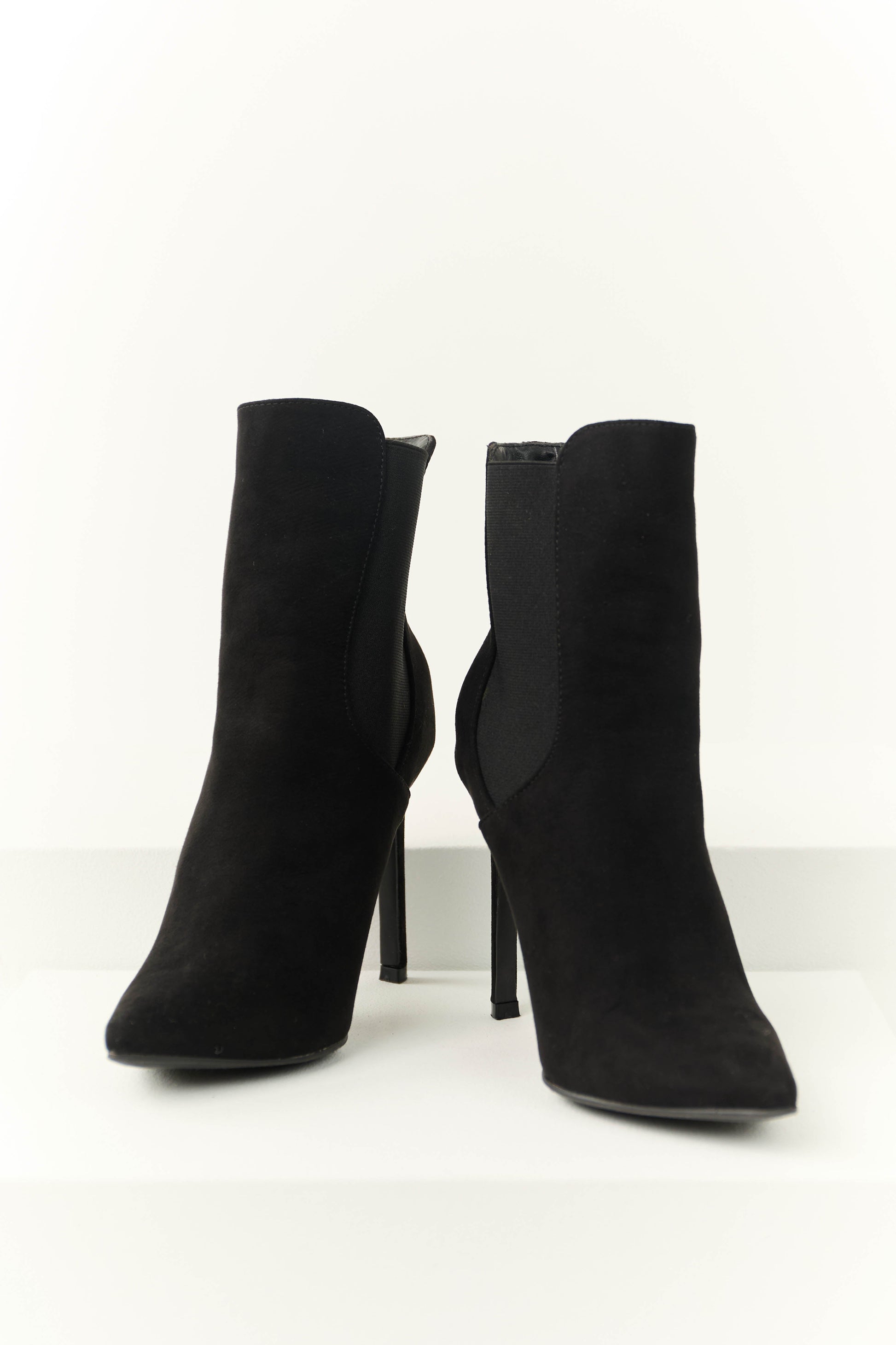 Black Faux Suede Elastic Panel Stiletto Booties