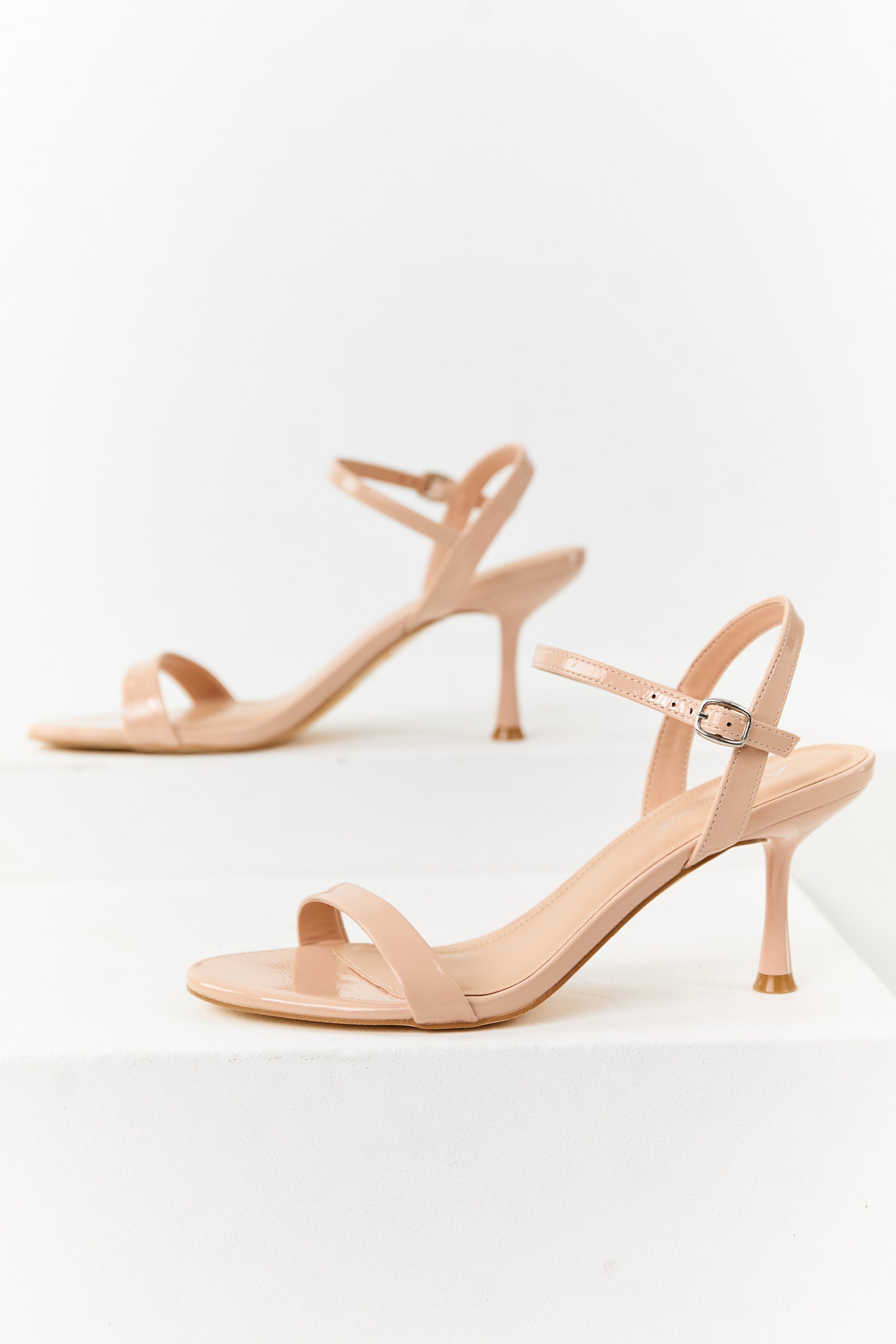 Champagne Patent Faux Leather Ankle Strap Heels